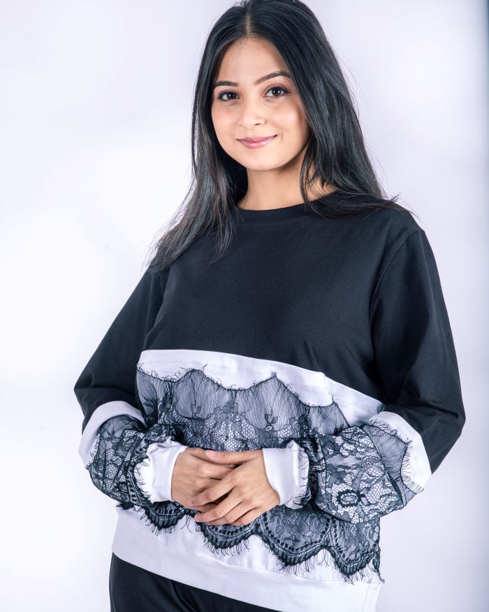 • Full-sleeve top with lace detailing